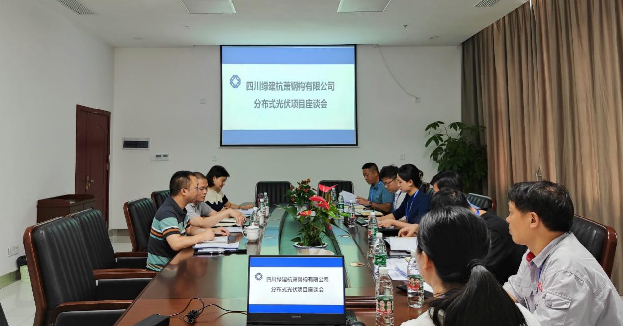 2022年6月30日上午,四川綠建杭蕭鋼構(gòu)有限公司(以下簡稱:綠建杭蕭)與四川省能源投資集團有限責(zé)任公司相關(guān)負(fù)責(zé)人共同召開分布式光伏項目座談會。綠建杭蕭總經(jīng)理古敏同志攜領(lǐng)導(dǎo)班子與相關(guān)部門負(fù)責(zé)人參加會議。